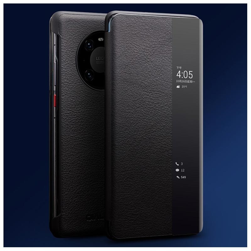 Beskyt din Huawei Mate 40 Pro samtidig med at den er fuldt funktionel med dette Qialino smart view cover lavet af ægte okselæder.
