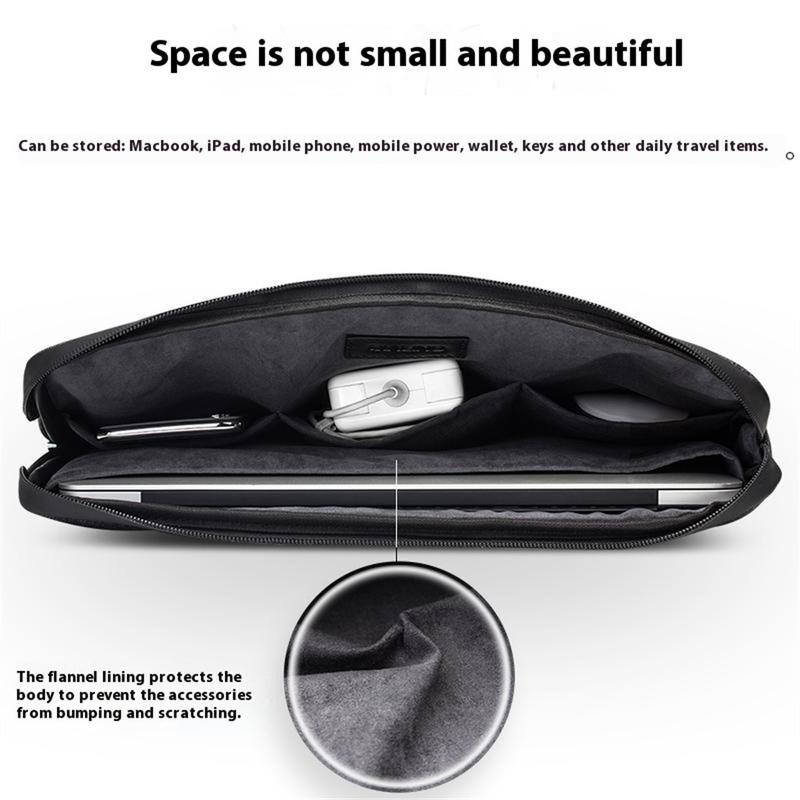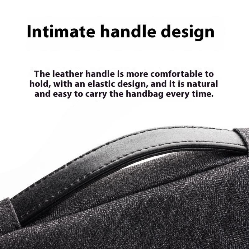 Rejs, pendl eller gå til undervisning med total ro i sindet: Qialino 13" laptop sleeve kombinerer vandafvisende nanotekstil med støddæmpende polstring og en aftagelig håndtagsstrop. Det måler kun 25 × 36,5 cm og passer nemt i en rygsæk, men har alligevel plads nok indvendigt til en bærbar computer, tablet, telefon og oplader. En skjult lynlås og læderforstærkning giver et ekstra lag af sikkerhed og stil i hverdagen.