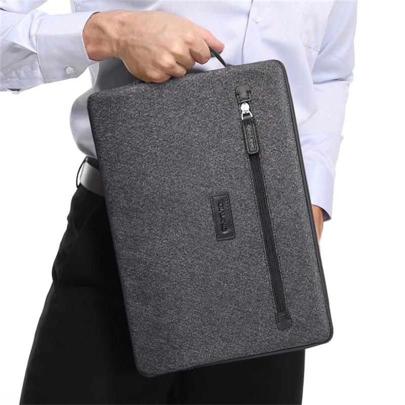 Rejs, pendl eller gå til undervisning med total ro i sindet: Qialino 15" laptop sleeve kombinerer vandafvisende nanotekstil med støddæmpende polstring og en aftagelig håndtagsstrop. Det måler kun 28 x 39,5 cm og passer nemt i en rygsæk, men har alligevel plads nok indvendigt til en bærbar computer, tablet, telefon og oplader. En skjult lynlås og læderforstærkning giver et ekstra lag af sikkerhed og stil i hverdagen.