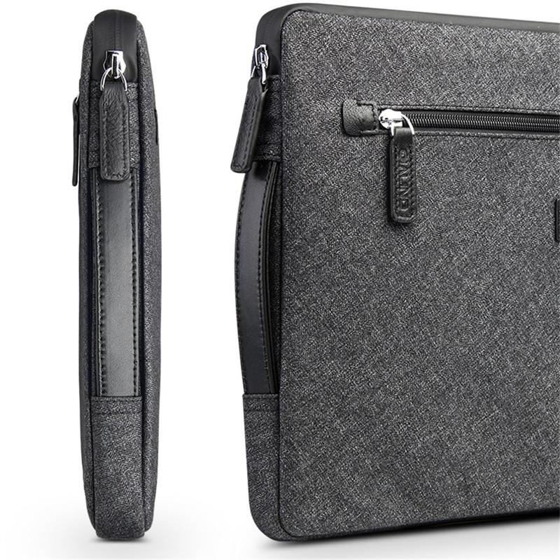 Qialino vandafvisende sleeve til bærbar computer - stødabsorberende etui i nanotekstil med håndtagsstrop