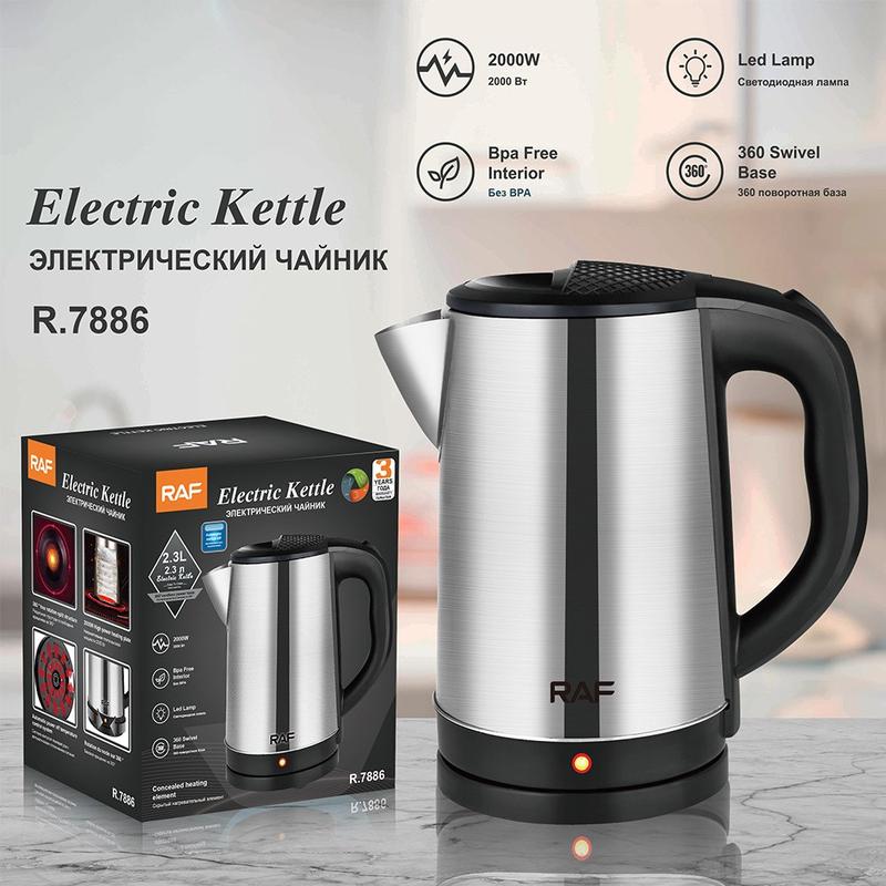 RAF R.7886 El-kedel 2.0L - 2000W kedel i rustfrit stål med automatisk slukning og LED-indikator (EU-stik)