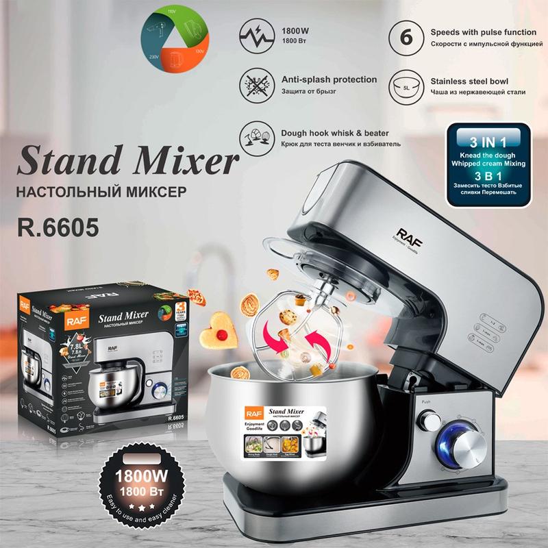RAF R6605 Automatic Dough Mixer er et kraftfuldt og alsidigt køkkenapparat, der er designet til at forenkle hverdagens madlavning og bagning. Med en robust 1800W-motor, en stor 5L-skål i rustfrit stål og flere røremaskiner klarer den nemt æltning, blendning, piskning og blanding til en lang række opskrifter.