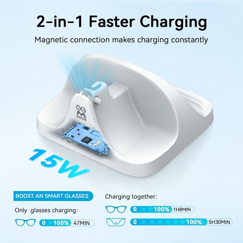 AMVR CD3 giver ubesværet magnetisk justering, dobbelt hurtigopladning, statusfeedback i realtid og stærk sikkerhedsbeskyttelse, hvilket gør den til den ideelle opladningsløsning for brugere af Ray-Ban Meta AI Glasses.