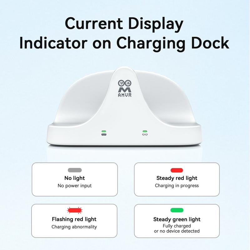 Docken stopper også automatisk opladningen, når brillerne når fuld styrke - det beskytter enhedens sundhed og forlænger batteriets levetid.