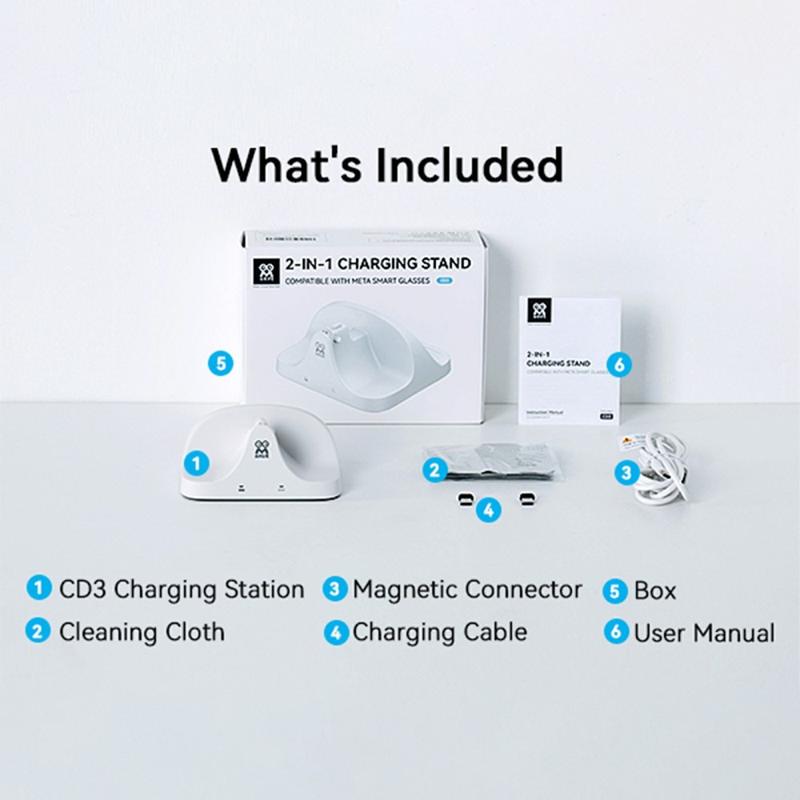 AMVR CD3 Magnetisk 2-i-1 hurtigopladningsdock til Ray-Ban Meta AI-briller Gen 1, Gen 2
