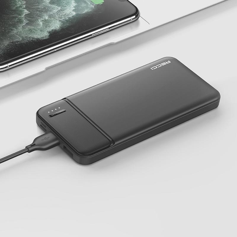 Recci RPB-N16C 10000mAh Ultra-Slim Powerbank - Bærbar oplader med dobbelt USB-udgang