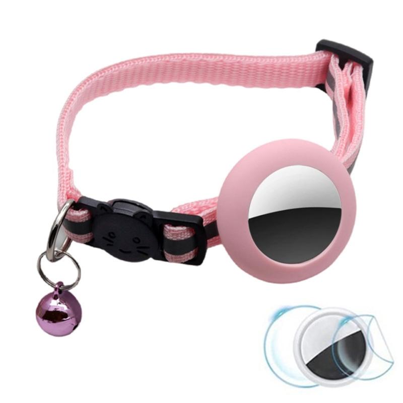 Reflekterende kæledyrshalsbånd med klokke til hund/kat og AirTag 1/2-silikoneetui med beskyttelsesfilm sæt