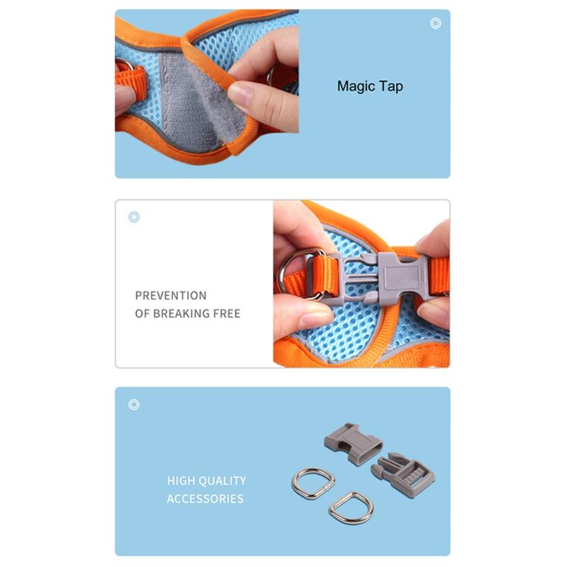 - Sikker lukning: Har et magisk bånddesign, der er nemt at tage på, og et sikkerhedsspænde, der forhindrer kæledyr i at flygte under udendørs aktiviteter.