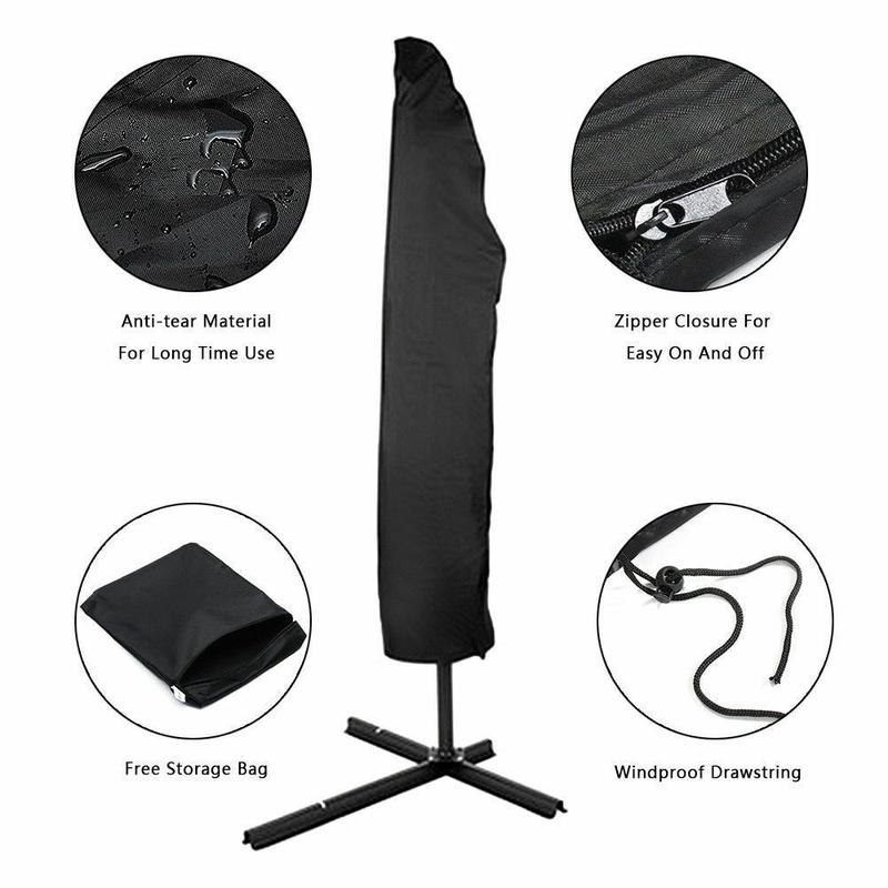 Sørg for, at din udendørs parasol har en lang levetid og er i perfekt stand ved at investere i dette regn- og vindtætte parasolovertræk af høj kvalitet. Dets holdbare konstruktion og brugervenlige funktioner gør det til et uundværligt tilbehør til enhver have- eller terrasseparasol.