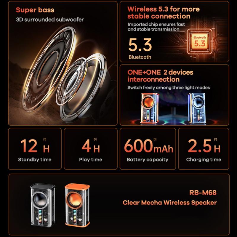 REMAX RB-M68 Clear Mecha trådløs højttaler bærbar mini 3D subwoofer Bluetooth-højttaler - sort