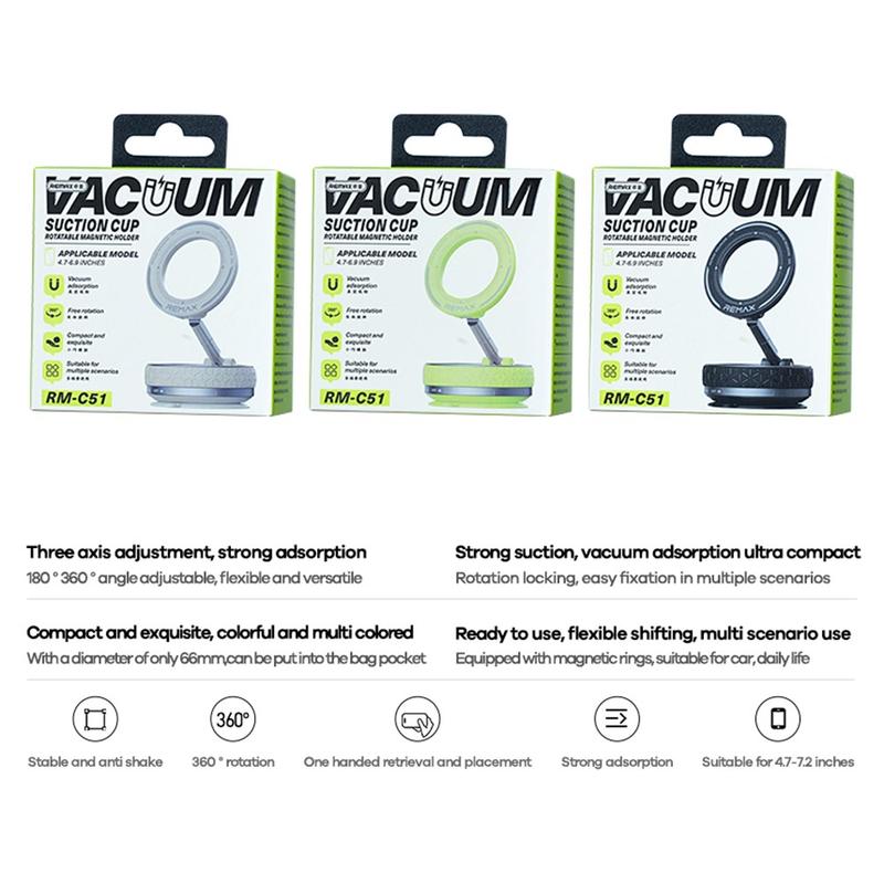 REMAX RM-C51 3-akset magnetisk telefonholder - vakuumsikret sugekopholder til bil, hjem og rejse