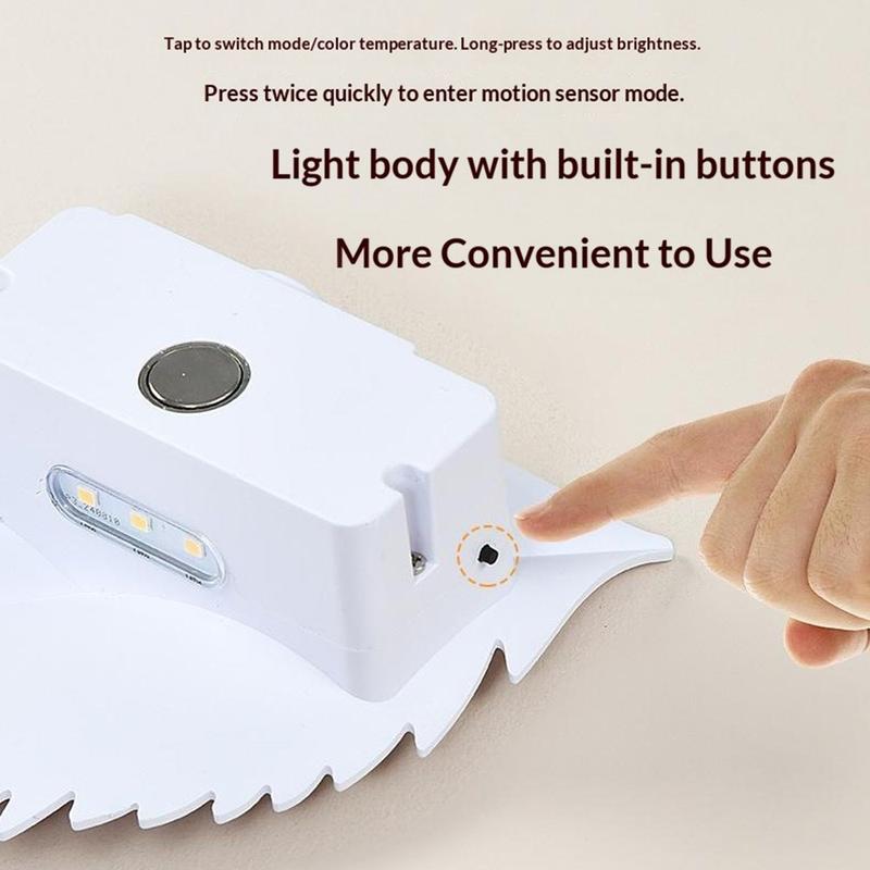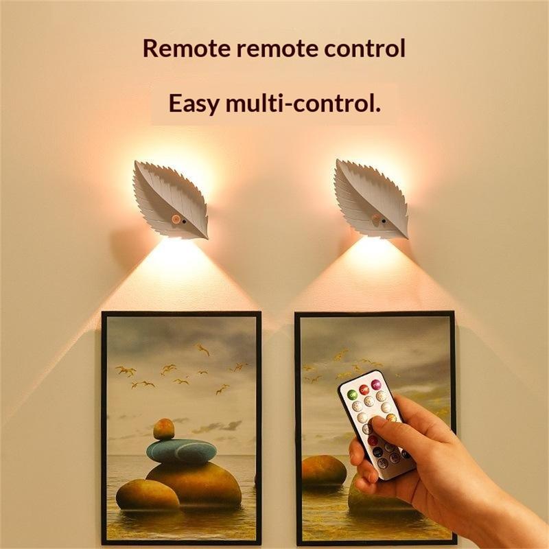 RGBW genopladeligt bladnatlys med bevægelsessensor og fjernbetjening - magnetisk væglampe, trinløs dæmpning, 10 farver, 2000 mAh, USB-C