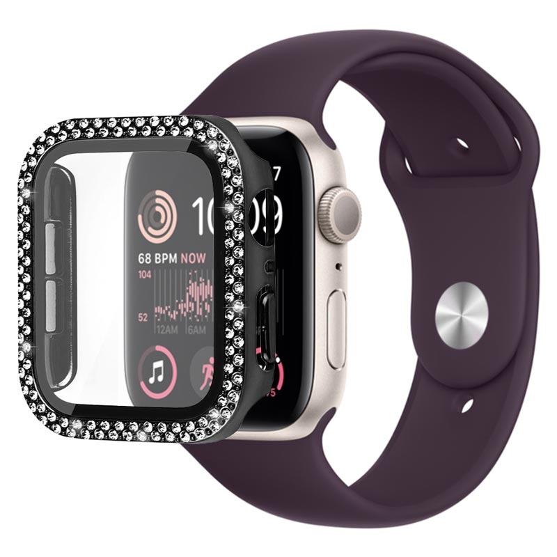 Rhinestone Dekorative Cover med Hærdet Glas Skærmbeskyttelse til Apple Watch SE (2022), Apple Watch SE, Apple Watch Series 6, Apple Watch Series 5, Apple Watch Series 4