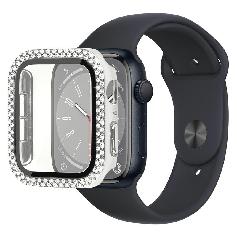 Rhinestone Dekorativt Apple Watch Series 9/8/7 Cover med Skærmbeskyttelse - 45mm - Sølv