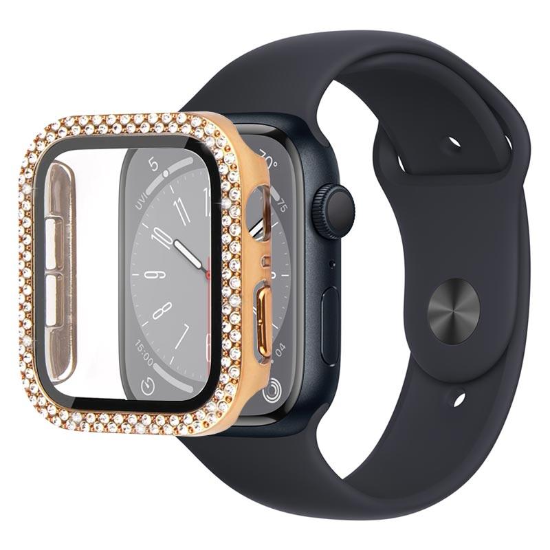Rhinestone Dekorativt Apple Watch Series 9/8/7 Cover med Skærmbeskyttelse - 41mm - Guld