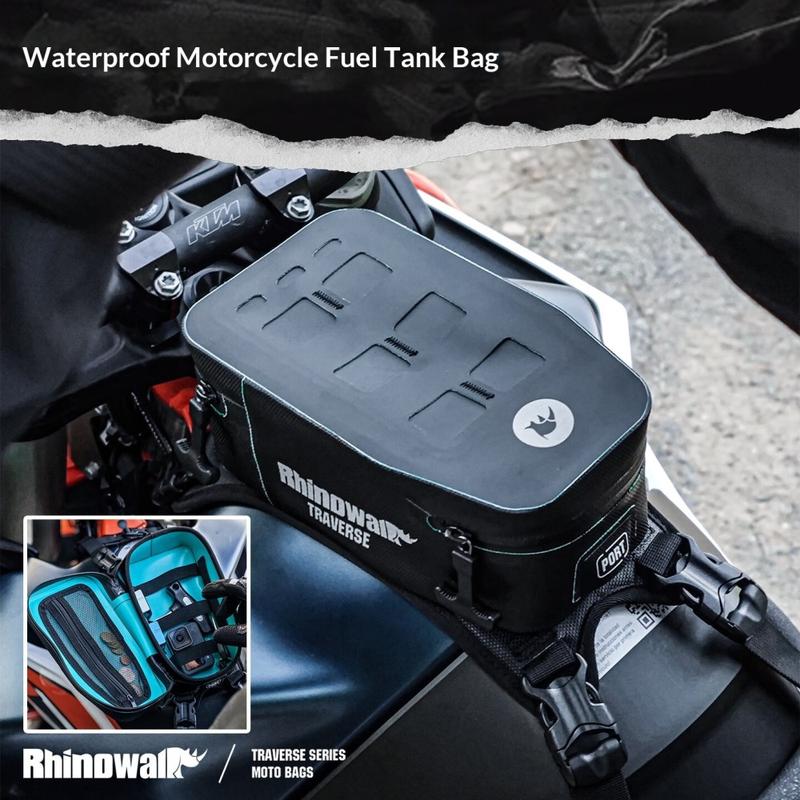 Hold dine vigtigste ting til turen organiseret og beskyttet med Rhinowalk MCY2601 motorcykeltanktaske. Denne kompakte opbevaringstaske på 2liter er specielt designet til motorcykler i TRaverse-serien. Den sidder sikkert fast på brændstoftanken og giver nem adgang til ting, du bruger ofte, såsom telefoner, værktøj, nøgler eller opladerkabler, mens du kører.