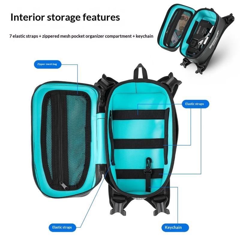 Rhinowalk MCY2601 tilbyder en praktisk kombination af kompakt opbevaring, vandtæt beskyttelse og stabil montering. Den smarte indvendige indretning og det hurtigt tilgængelige design gør den ideel til motorcyklister, der ønsker at have vigtige genstande inden for rækkevidde uden at fylde motorcyklen med voluminøst bagage.