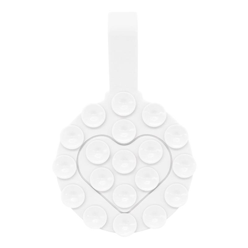RK-X18/19 Silikone hjerteformet sugekop-telefonholder - dobbeltsidet, aftagelig montering - hvid