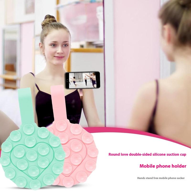RK-X18/19 Silikone hjerteformet sugekop-telefonholder - dobbeltsidet, aftagelig montering