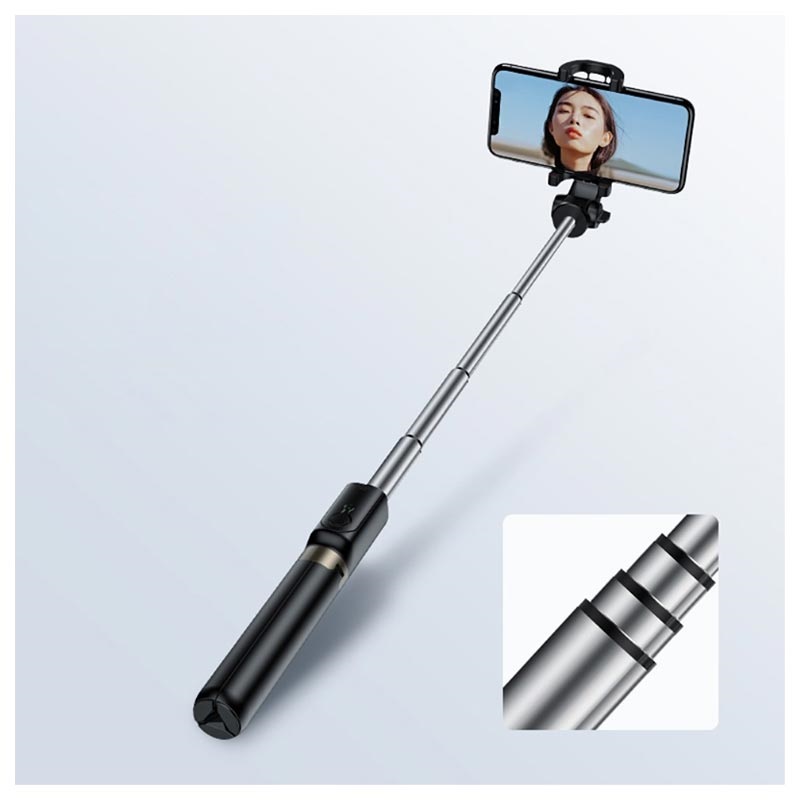 Modellen inkluderer en Bluetooth-fjernbetjening, som du kan tage af håndtaget, og tage fotos fra en afstand på op til 10 meter. Samtidig holder det polstrede spænde din telefon sikkert monteret, og tripod'en, der er integreret i håndtaget, garanterer at du dine fotos og videoer ikke bliver slørede eller rystede.