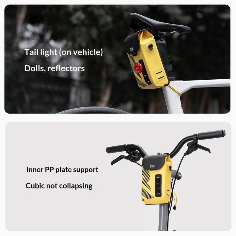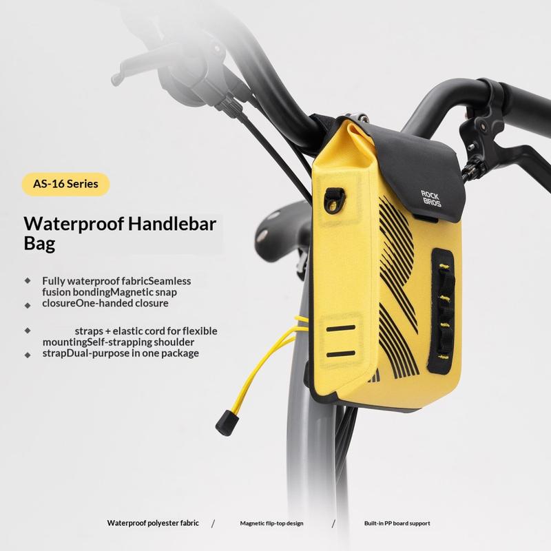 Transportér dine vigtigste ting sikkert i al slags vejr med ROCKBROS AS-160 styrtaske. Den er designet til landevejscykler, mountainbikes og foldecykler og kombinerer vandtæt stof med sømløs svejsning, så dine ting forbliver tørre på regnfulde ture. Det magnetiske flip-cover giver hurtig adgang med én hånd, mens du cykler, og det strukturerede interiør med PP-pladeunderstøttelse holder tasken stabil og velformet, selv når den er pakket. En aftagelig skulderrem giver dig mulighed for at skifte fra cykeltaske til afslappet skuldertaske på få sekunder.