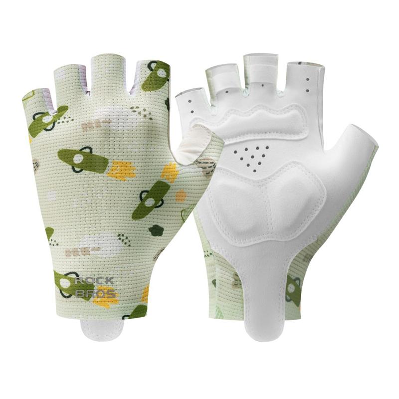 Rockbros Cykelhandsker til børn med tegneseriemønster / Åndbare cykelhandsker med halve fingre og stødabsorberende håndflade