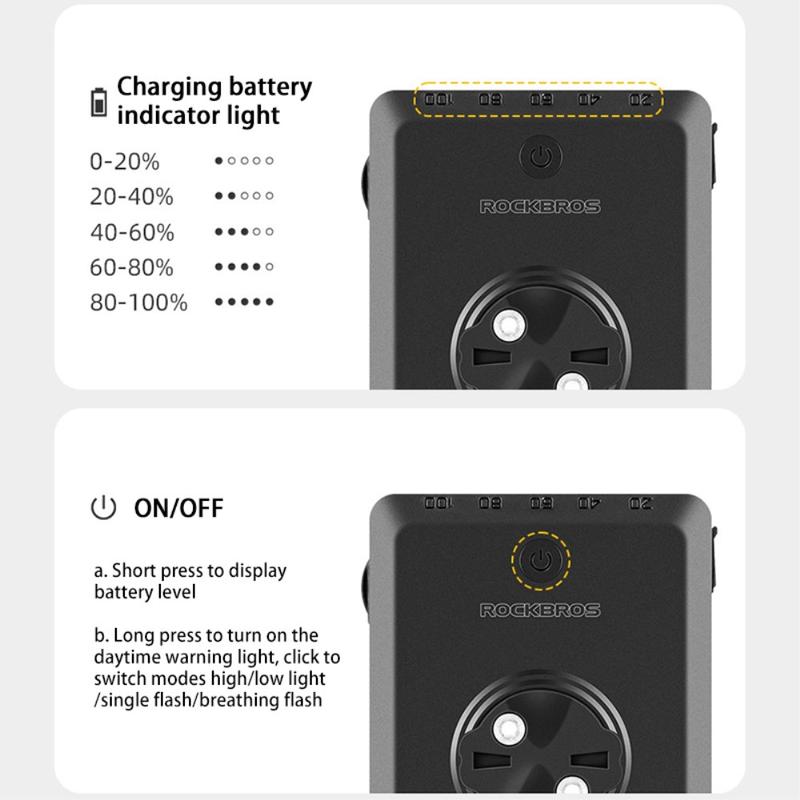 ROCKBROS JP008 er den ideelle løsning for cyklister, der ønsker lys, sikkerhed og strøm i én enhed – uanset vejr og vejtype.