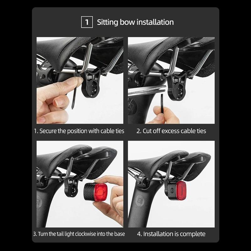 ROCKBROS Q3 Sensing Auto On/Off Cykellygte Cykelbaglygte Vandtæt USB LED Cykellygte til natkørsel - Sort