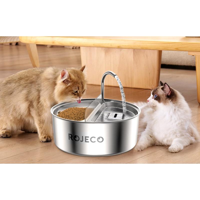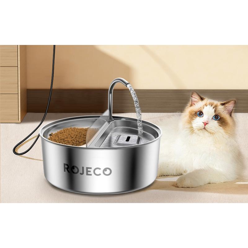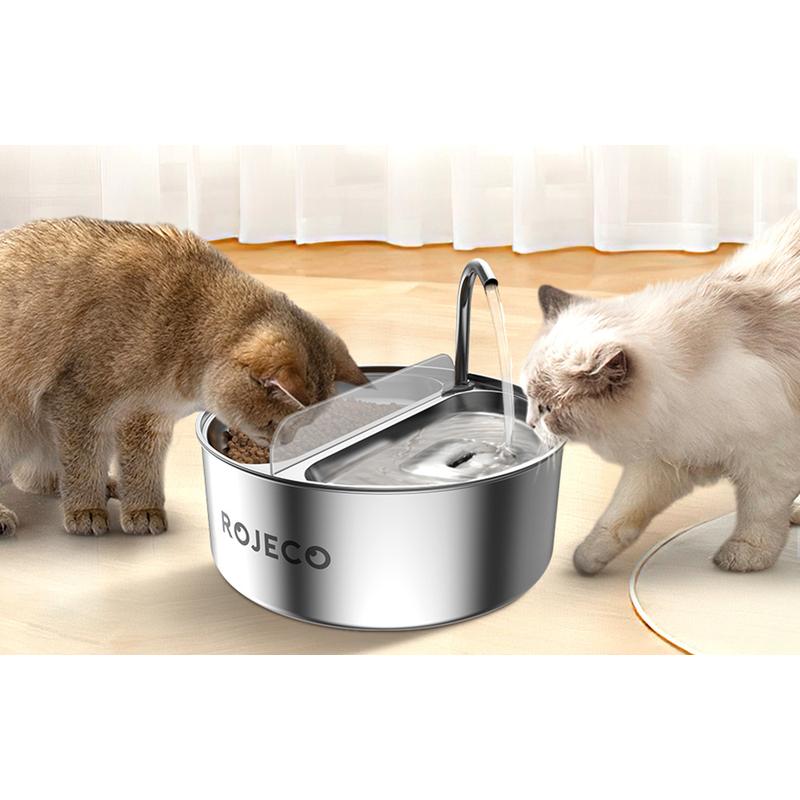 Rojeco 2-i-1 vandfontæne og foderautomat til kæledyr i rustfrit stål - 3.2l