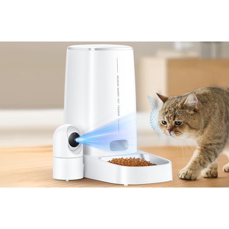 Rojeco 4L Smart Pet Feeder med 1080p-kamera - app-styring, tovejslyd, friskhedslås, antiblokeringssystem, backupbatteri (rustfrit stål)