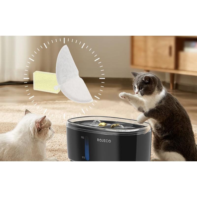 Sørg for, at dit kæledyr altid har adgang til sundt, rent og frisk vand. De medfølgende Rojeco-drikkefiltre hjælper dig med at gøre det! Filteret med aktivt kul og ionbytterharpiks fjerner effektivt tungmetaller og forurenende stoffer, mens svampefilteret fanger hår, pels og andet større snavs. Før du bruger produkterne, skal du dyppe dem i vand og rengøre dem. For at sikre optimal filtreringsydelse skal du huske at skifte filtrene mindst hver 2.-4. uge - det er ikke noget problem at installere dem.