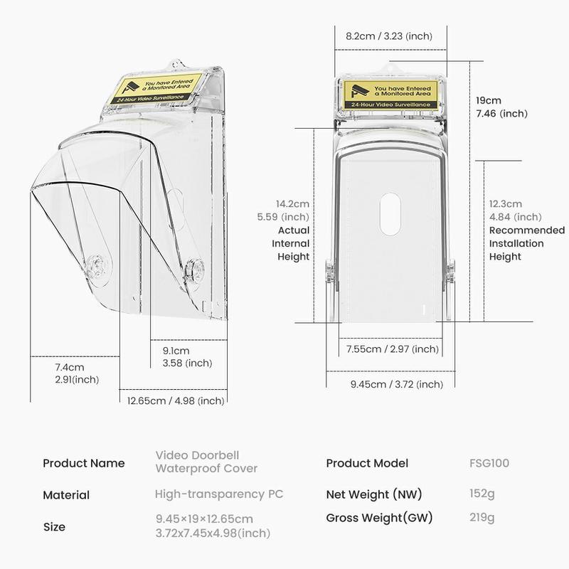 Dette cover beskytter effektivt din dørklokke mod regn, sne og støv, hvilket hjælper med at forlænge enhedens levetid og opretholde stabil drift hele året. Ideelt til udsatte indgange, porte og udendørs mure.