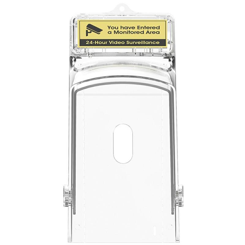 En fluorescerende advarselsmærkat på toppen af coveret fungerer som en visuel afskrækkelse, der advarer potentielle ubudne gæster om aktiv overvågning og reducerer risikoen for manipulation eller tyveri.