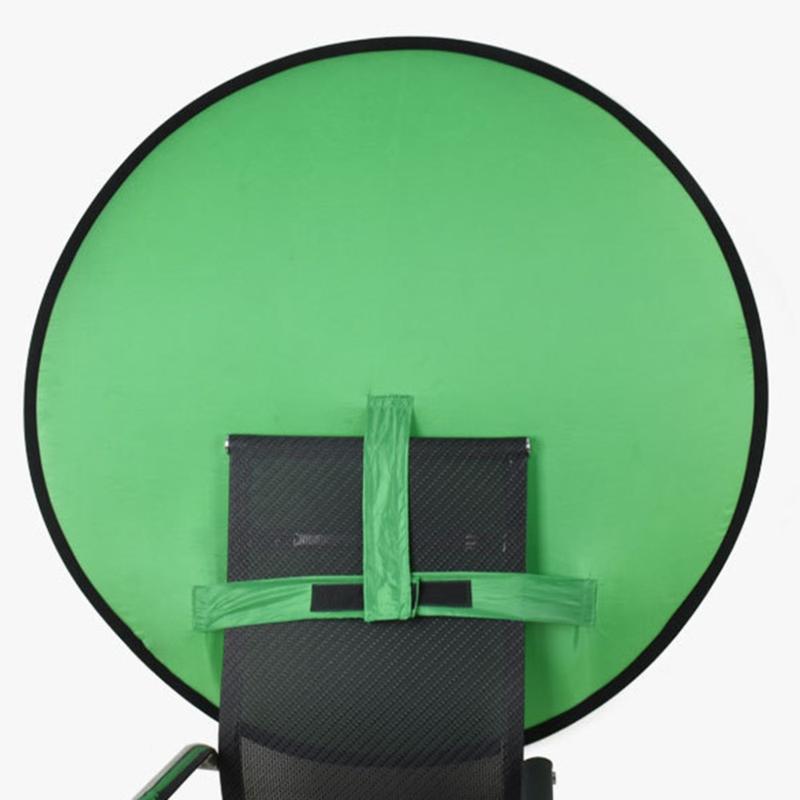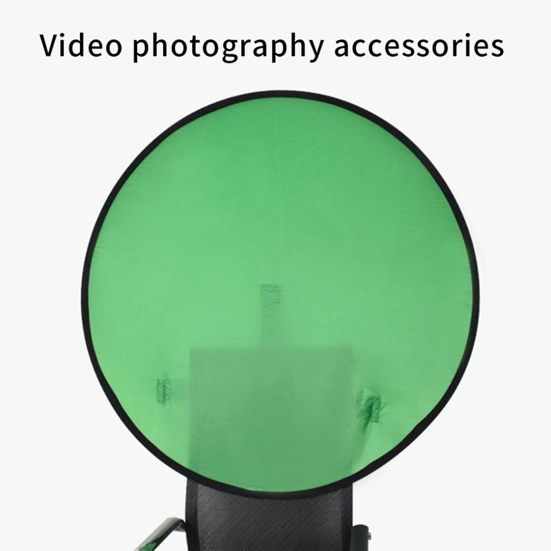 Lav fotos og videoer i professionel kvalitet hvor som helst med den runde green screen-fotobaggrund til stolen. Denne 75cm lange baggrund er designet til at være praktisk og bærbar og giver en ren overflade med chroma key, der er ideel til streaming, videoopkald og fotografering - både indendørs og udendørs.