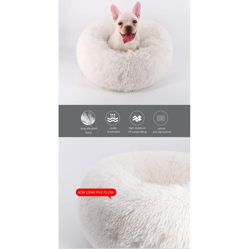 Giv dit kæledyr et hyggeligt, beroligende sted at hvile og slappe af med Round Plush Pet Bed, et must-have for at sikre deres komfort og lykke hele året rundt!