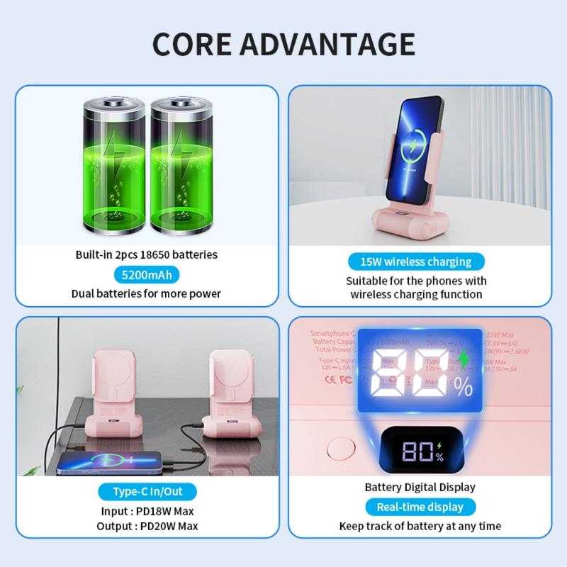 - 15W trådløs opladning: Understøtter 15W trådløs opladning for at holde din telefon opladet, mens du fotograferer. Kompatibel med alle smartphones, der understøtter trådløs opladning.