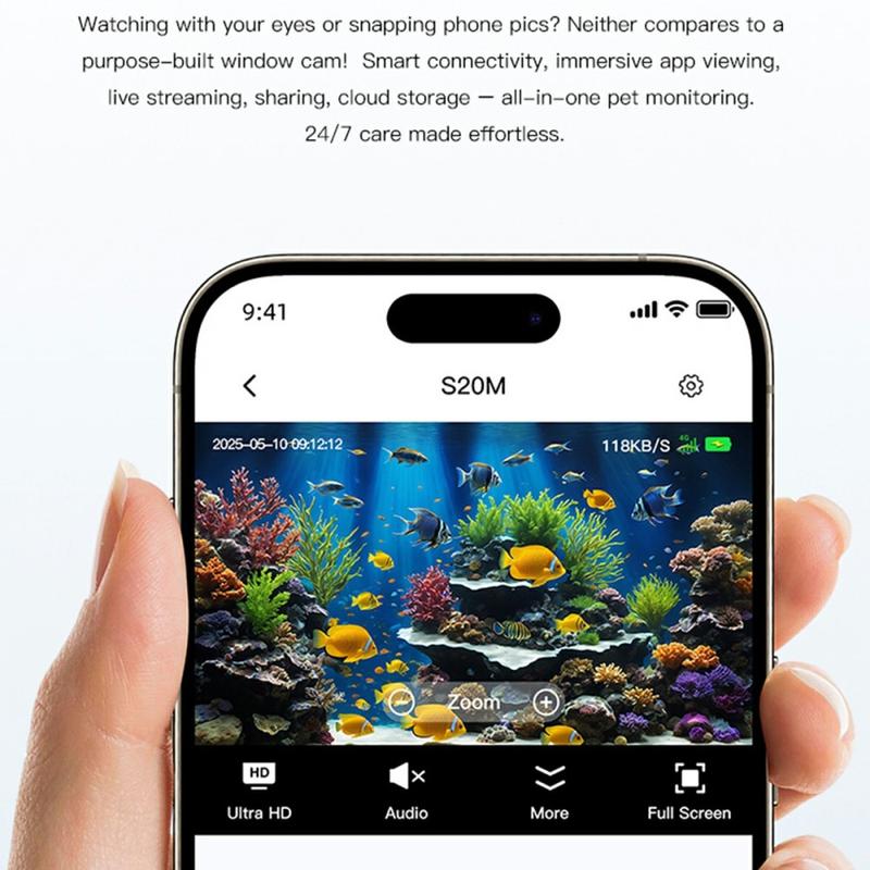 S20M er ideel til brugere, der har brug for stille, diskret overvågning med klare billeder og interaktion i realtid. Dens selvlysende nattesyn gør den særligt velegnet til akvarier, mens tovejslyd og bevægelsesregistrering tilføjer sikkerhedsfunktioner til hverdagen. Den er kompakt, nem at installere og alsidig og passer problemfrit ind i overvågningsopsætninger i hjemmet.