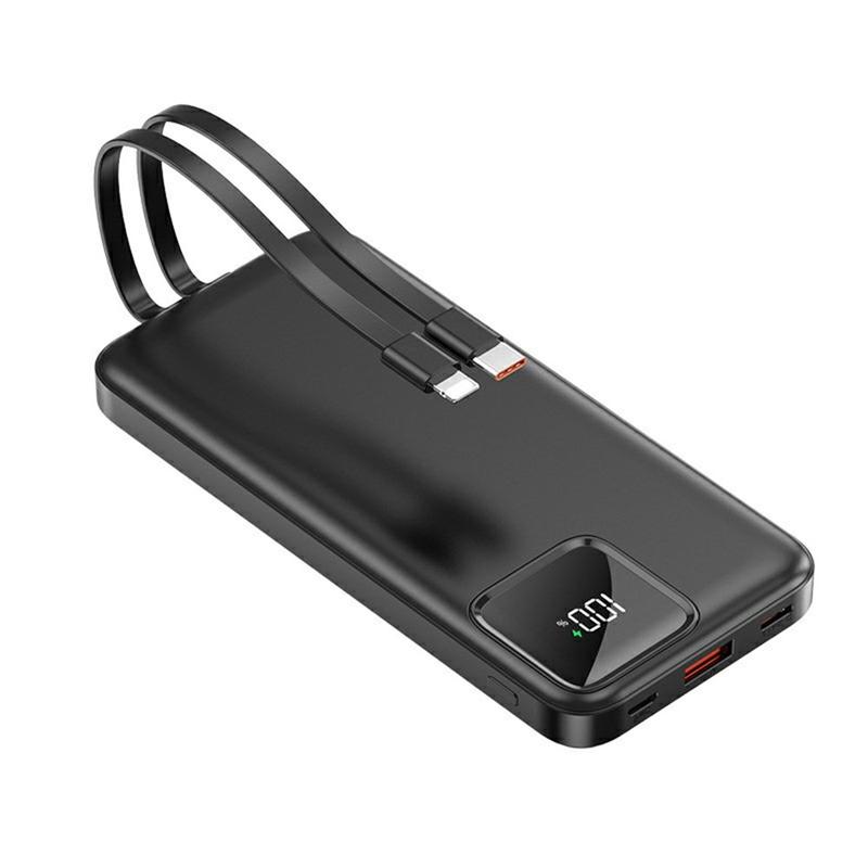 S38N Slim 10000mAh Powerbank - 22.5W hurtigopladning med indbyggede USB-C- og Lightning-kabler, digital batteridisplay, multiportudgang