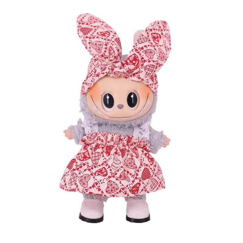 Sæt med kjole og pandebånd til havefest til Labubu minifigur 17cm - rød