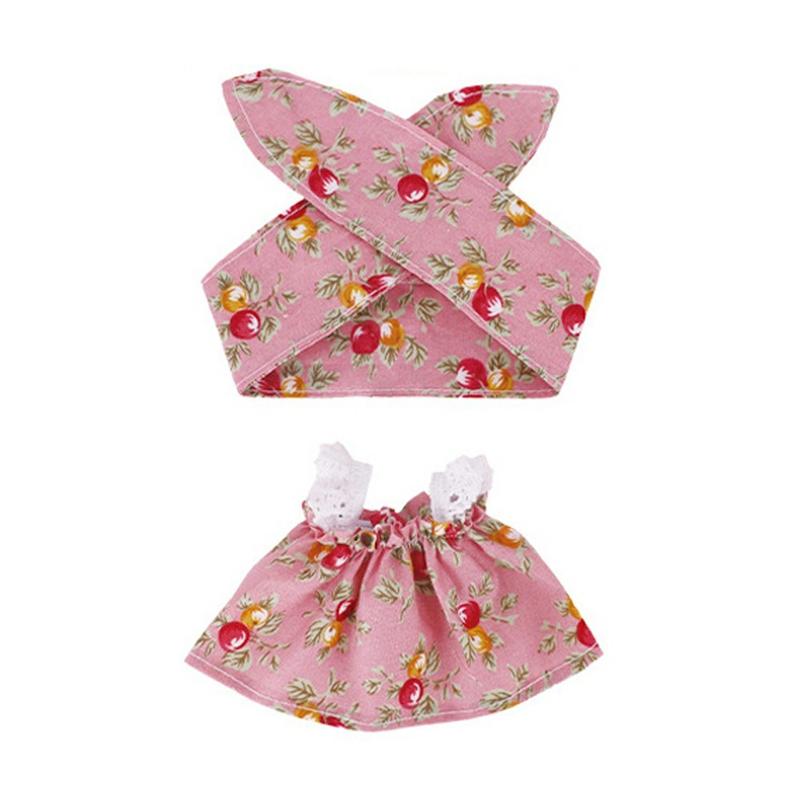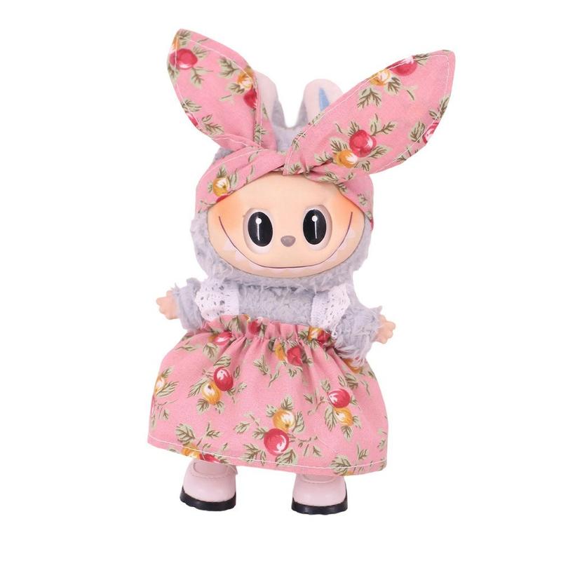 Havefestkjole og pandebåndssæt til 17cm Labubu-minifigur - skræddersyet festtøj, blødt stof, nemt påklædningsdesign