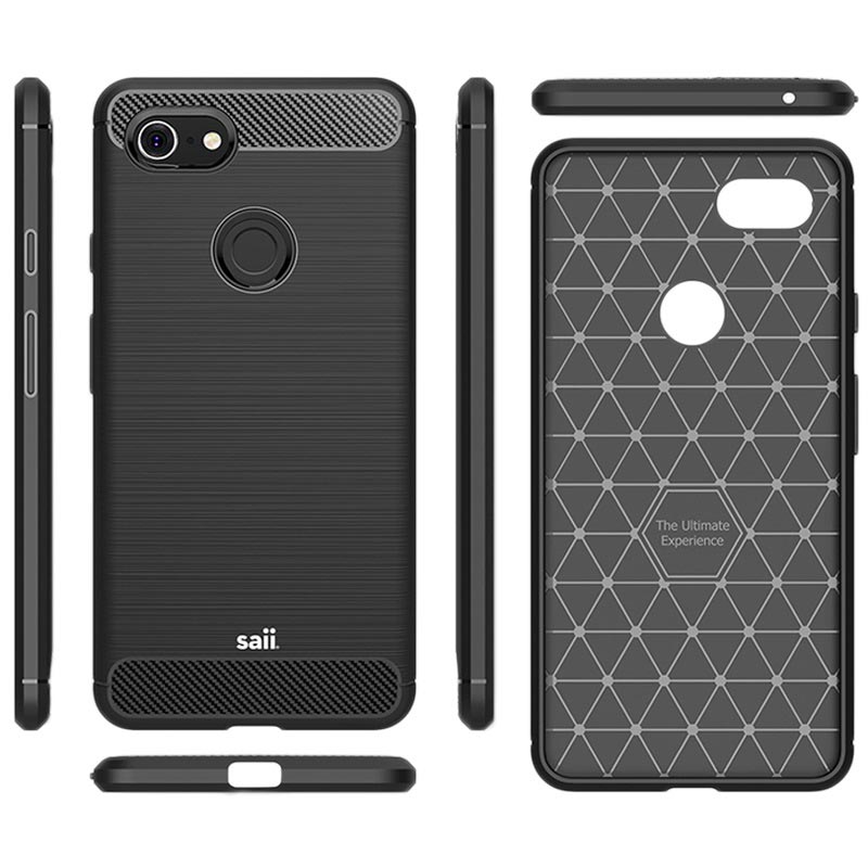 Saii Børstet Google Pixel 3 XL TPU Cover - Karbonfiber - Sort