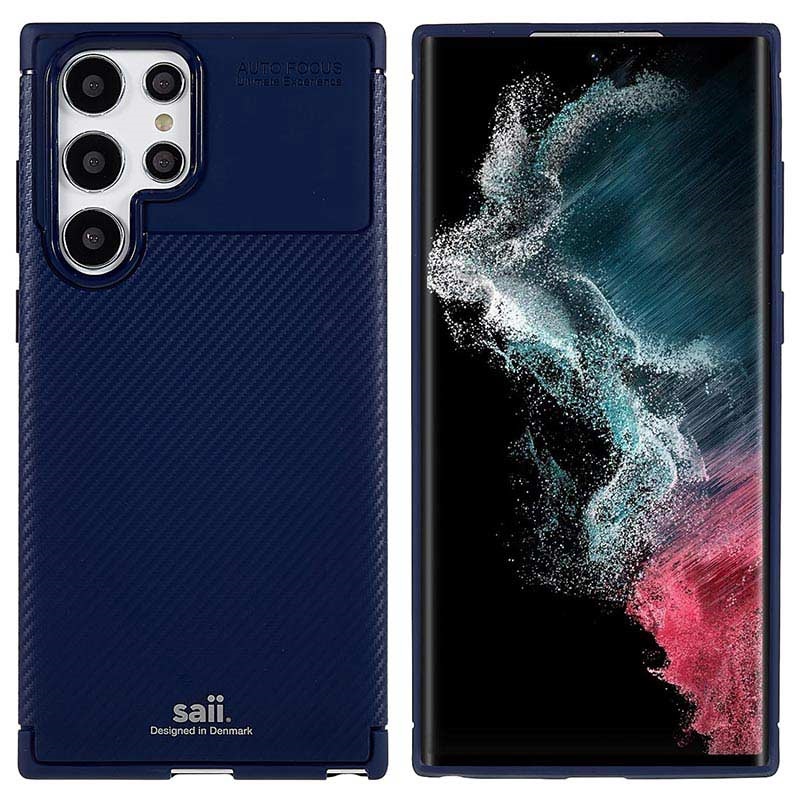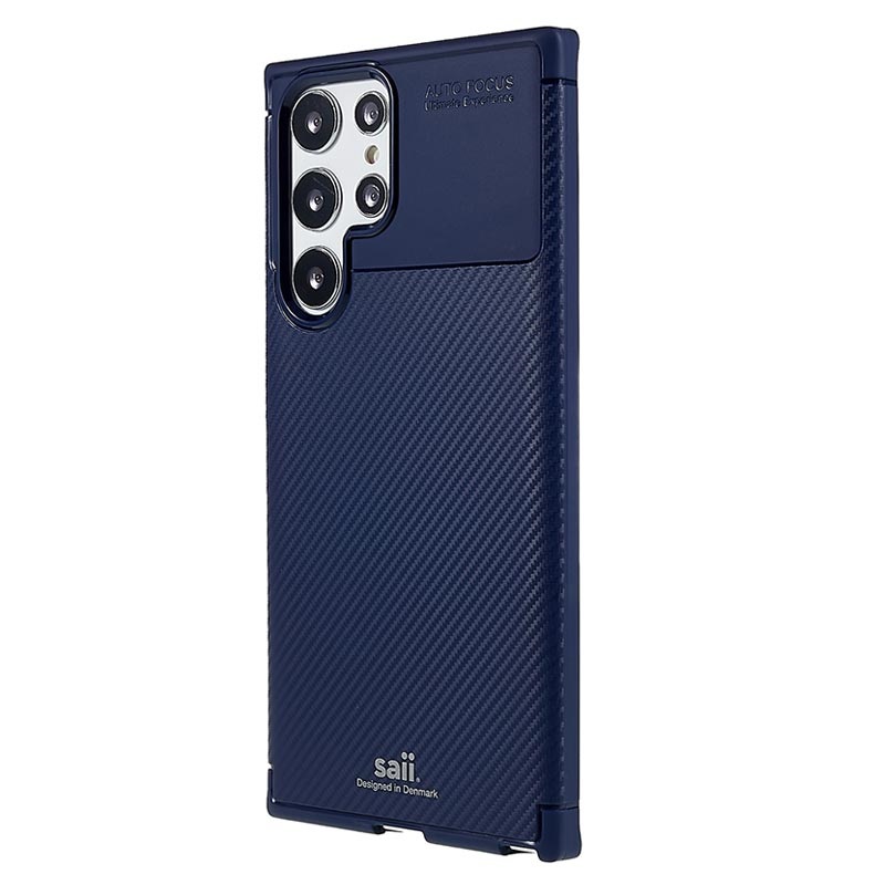 Saii Karbonfiber Samsung Galaxy S22 Ultra 5G TPU Cover - Blå