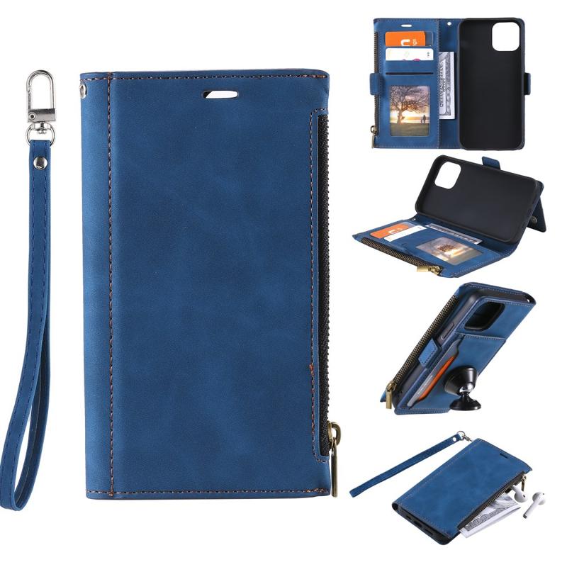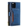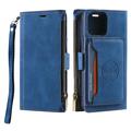 iPhone 14 Plus Saii Lynlås Pung Taske med Rem - Blå