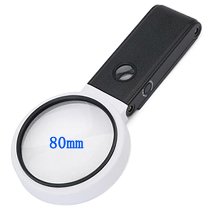 Hvil dine øjne, og brug dette foldbare forstørrelsesglas til at se små genstande i bedre detaljer eller for at se billeder eller tekst klarere. Dette forstørrelsesglas er udstyret med seks LED-lys og to UV-lys, og det kan bruges som håndholdt eller skrivebordsforstørrelsesglas.
