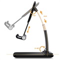 Denne kompakte og stilrene bordholder er et fantastisk tilbehør til dit hjem eller kontor. Med denne holder kan du læne dig tilbage og slappe af til en film eller serie, helt uden at skulle holde din smartphone eller tablet! Den har en automatisk tyngdepunktsregulering, som tilpasser tyngdepunktet i henhold til enhedens vægt. Derudover har den et bueformet stativ der kan forlænges, hvilket sikrer bedre stabilitet til din smartphone eller tablet. Holderen kan foldes sammen til lommestørrelse, hvilket gør den ideel at tage med på farten.