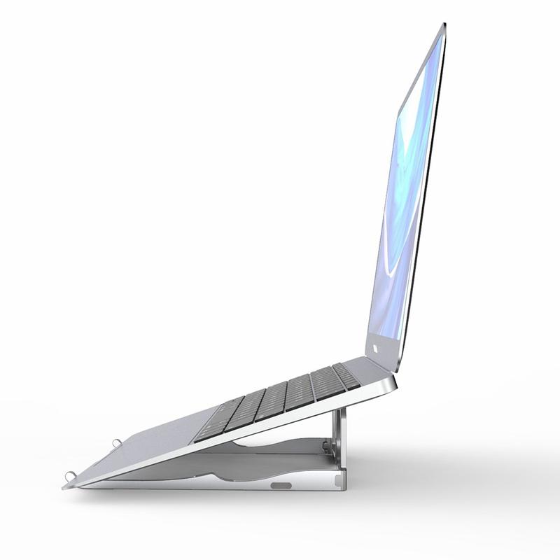 Laptopstativet kan bruges og foldes sammen med det samme, det er nemt at opbevare og praktisk at have med overalt.