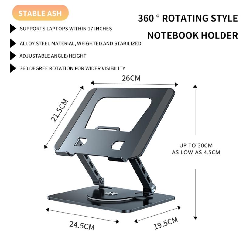 Sammenklappelig, drejelig laptopstander i kulstofstål YY-J29