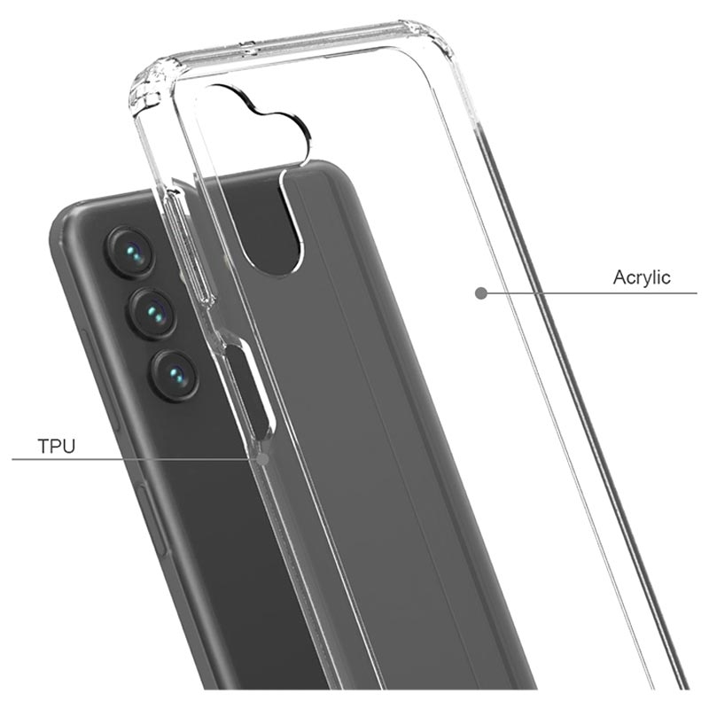 Dette gennemsigtige hårde akrylcover med TPU-stødfanger til Samsung Galaxy A13 5G er den perfekte kombination af stil og beskyttelse. Med sine mange funktioner og specifikationer er det et must-have tilbehør for enhver, der ønsker at holde deres telefon sikker og stilfuld.