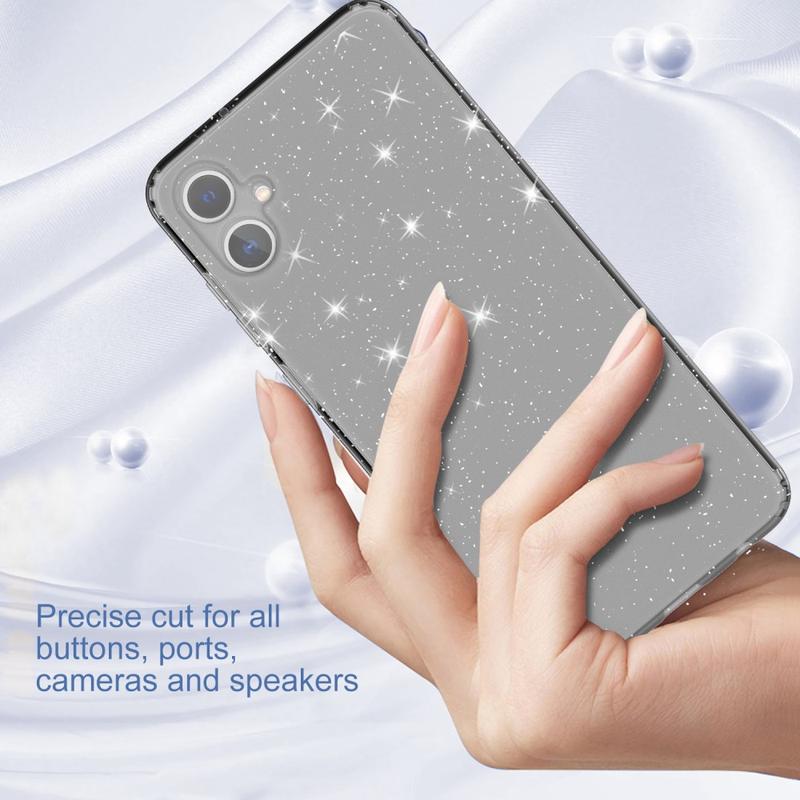 - Gennemsigtigt cover med glimmer, som giver din enhed et stilfuldt look