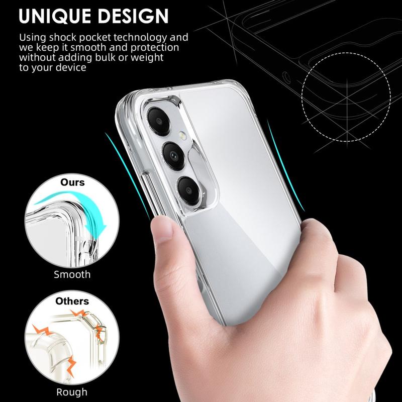 Giv din Samsung Galaxy A05s en effektiv beskyttelse med dette gennemsigtige hybrid cover.